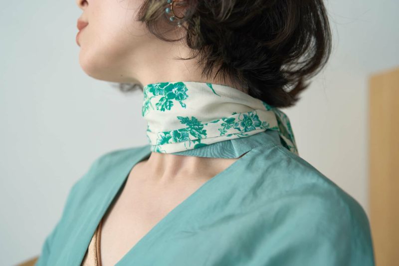 平面生地に立体感を持たせる為に、花柄の色付け部分の選択をこだわりました。