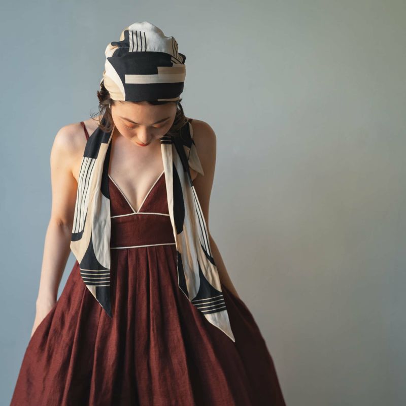 このターバンを被ることで、新しい扉を開き、一歩進んで欲しい。そして扉を開き信じて歩んで行って欲しい。そんな気持ちを込めました。 裏表でいろんな表情を魅せてくれるのも今回の2種のターバンの面白くお使いいただけるポイントになります。