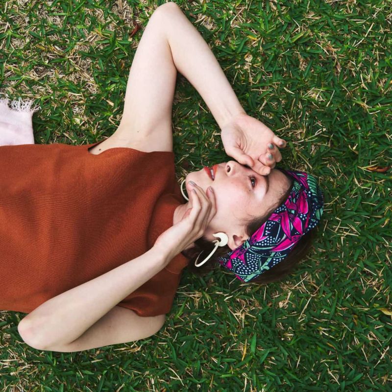 すっぽりと被り頭頂部を覆うことも、ヘアバンドのように巻くことも可能です。