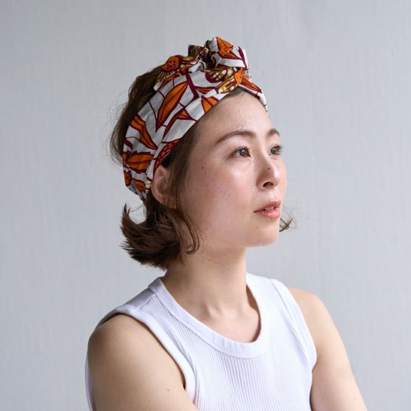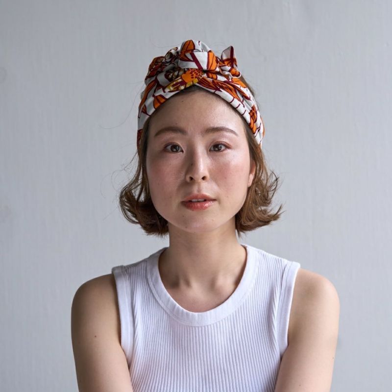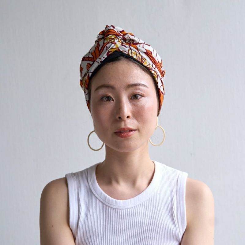 ターバン使用生地の特性上、巻き始めは生地慣れが弱いため滑りやすいと感じることもございます。