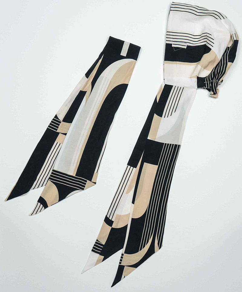 付属のリボンはスカーフとしてもお使いいただける自由度の高いターバンです。